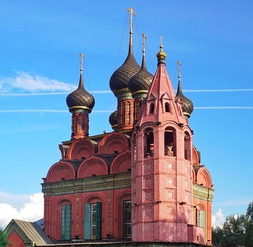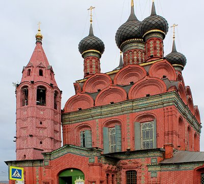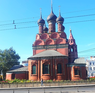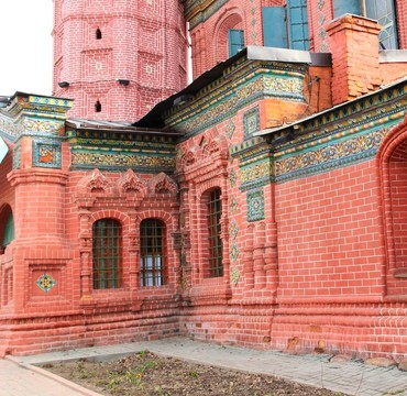 Пятиглавый храм со звонницей из красного кирпича был построен в 1684 - 1693 годах на средства купца гостиной сотни Алексея Авраамович Зубчанинова, его династия была тесно связана со Спасским монастырем, по соседству с которым и возвели этот храм.