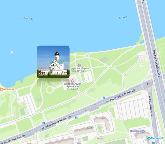 Белоснежный каменный одноглавый храм Чуда Архангела Михаила в Хонех с колокольней в Братеевском парке, построен в 2022 году по программе строительства православных храмов в Москве, неофициально известная название «Программа-200». предусматривающая возведение храмов шаговой доступности в спальных районах столицы. Под строительство храма префектура выделила удивительной красоты участок у Борисовского парка на берегу Москва реки. В 2013 году началось строительство деревянной церкви в честь преподобной Марии Египетской в 2014 году церковь построили и осветили. В этом-же году параллельно началось строительство каменного храма в честь Чуда Архангела Михаила в Хонех. К стройке подключился и основатель Музея русской иконы, меценат и благотворитель Михаил Абрамов. Именно при его участии в 2018 году были возведены стены, установлен купол. В августе 2019 года Михаил Абрамов трагически погиб. Средств на завершение строительства не хватало. Возведения храма затягивалось. После обращения к Святейшему Патриарху Кириллу вопрос финансирования строительства был решен.