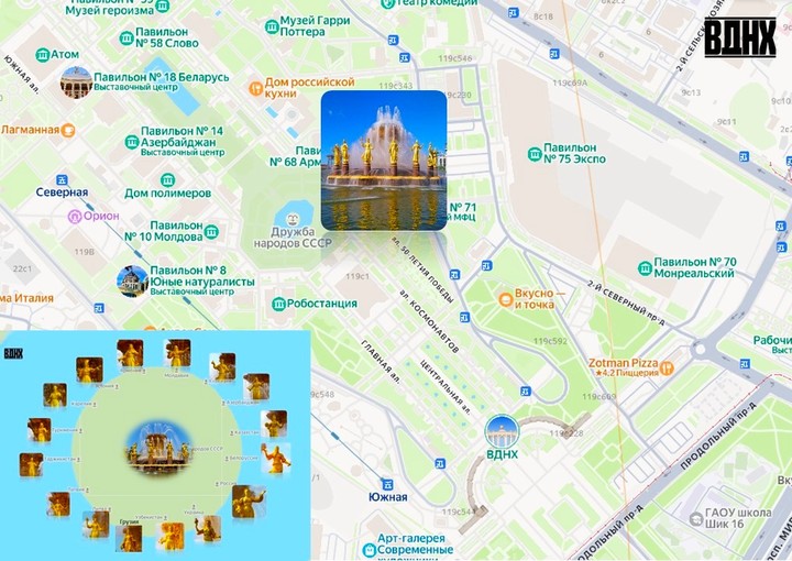 Фонтан «Дружба народов» на ВДНХ один из основных символов выставки. Создан в 1954 году, расположен рядом с Главным павильоном, на площади Дружбы народов, на Центральной аллее ВДНХ.