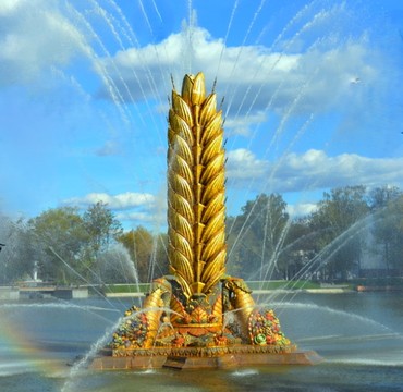 Сакральный смысл фонтана «Золотой колос» очевиден ведь с древних времен колосья означали возрождение, жизнь, урожай и плодородие.