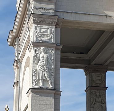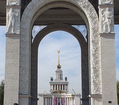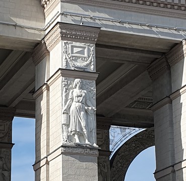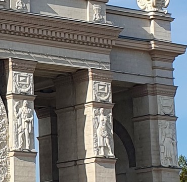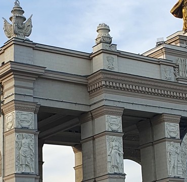 Арка Главного входа на ВДНХ - это первое, что видят люди, которые приходят на выставку. Величественная арка с колоннами, барельефами, и массивной скульптурой наверху. Арка является важной архитектурной частью ВДНХ, она встречает туристов и местных жителей завлекая своей красотой на выставки и мероприятия.