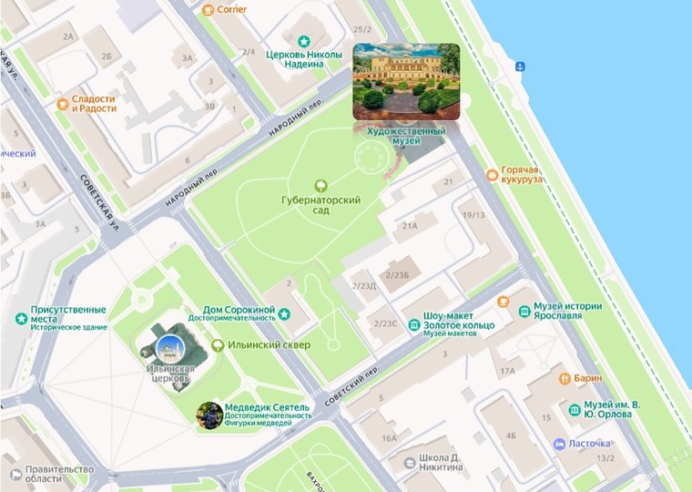 На волжской набережной есть Губернаторского дома построен в стиле классицизма в 1821–1823 годах по указу Александра I как императорский путевой дворец и официальная резиденция ярославских губернаторов.