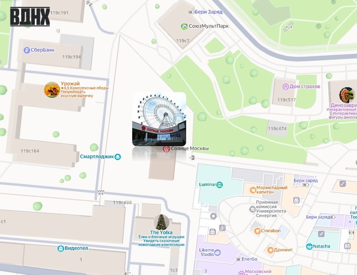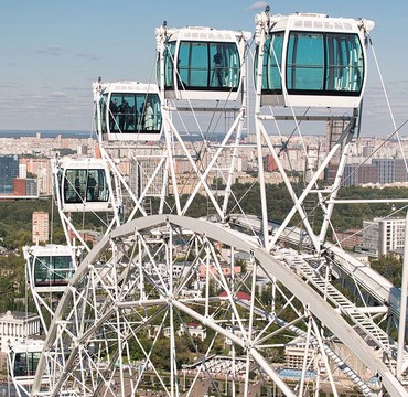 Колесо обозрения «Солнце Москвы» — это захватывающий аттракцион с панорамным видом на Москву и ее окрестности. Колесо является пятым по высоте в мире и самым высоким в Европе.