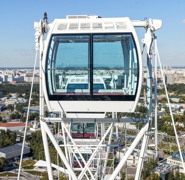 Колесо обозрения оборудовано 30-тью закрытыми кабинами, каждая 6-я с прозрачным полом (билеты в кабинки со стеклянным полом стоят дороже). Вместительность одной кабинки до 15 человек и площадью 10 м². Кабины оснащены кнопкой связи с оператором, кондиционерами, отопления и освещения, имеется видеонаблюдение. Продолжительность одного оборота колеса составляет 18 минут 40 секунд.