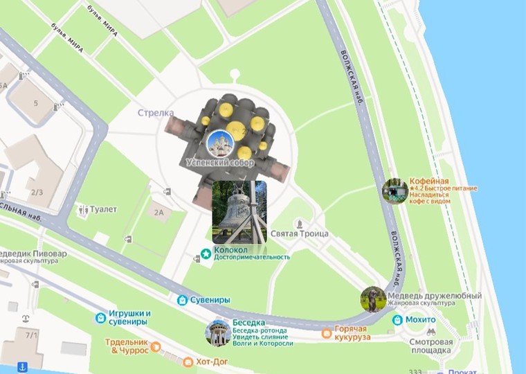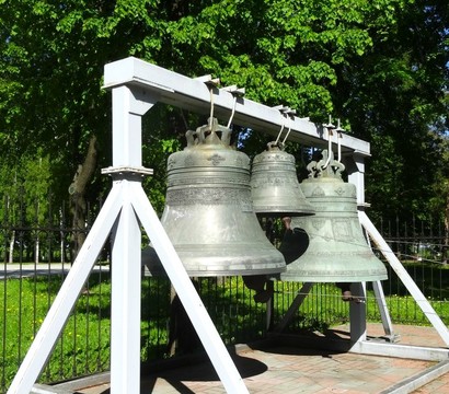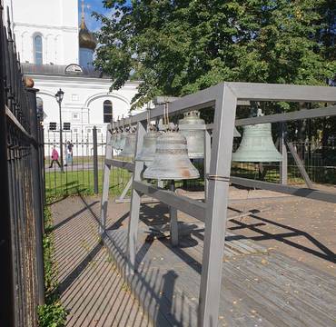У Успенского собора в Ярославле находится временная звонница с колоколами. Они расположены за металлической оградой как промежуточное решение до момента полного восстановления храмового комплекса.