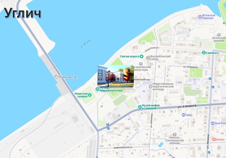 Под музей гидроэнергетики в городе Углич было решено отдать двухэтажное здание 30-40 годов в котором раньше располагалось управление Волголага, именно в этом историческом здании принимались решения какая будет Угличская ГЭС. И теперь это здания уникальная сочетания истории и современности, с виду сохранивший облик тех годов, а внутри современный и технологичный информационный музей, который удивит и заинтересует как взрослого, так и ребенка, сломает Ваши стереотипы о музеях в целом - Вы увидите, современные, интерактивные залы, электрифицированы карты и сенсорные экраны с информированными и обучающими программами, где можно потрогать руками экспонаты, увидеть интересные макеты других действующих ГЭС, можно совершить виртуальную прогулку по Саяно-Шушенская гидроэлектростанция. Много чего удивительного и интересного Вас ждет при посещении этого музея.