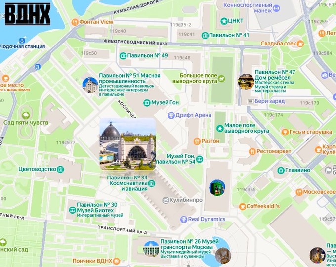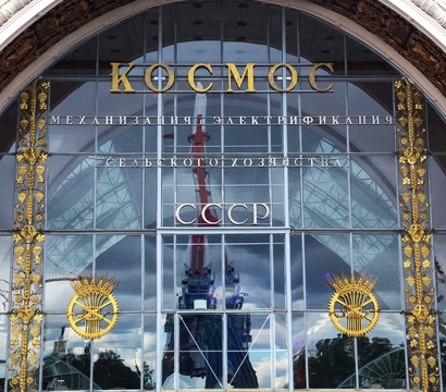 Павильон № 34 «Космос» построили в 1939 году для экспозиции «Механизация и электрификация сельского хозяйства СССР» и изначально представлял как сооружение-эллинг которое было похоже на дебаркадер.