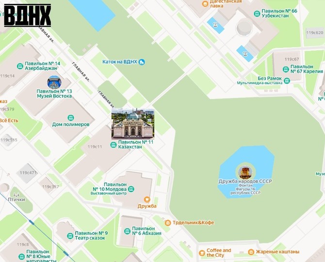 Одним из самых впечатляющих архитектурных сооружений ВДНХ является павильон №11 «Казахстан», построен в 1954 годах для экспозиции Казахской ССР. В 1964 году был реконструирован для отраслевой выставки «Металлургия». В 2011 году павильон передали в аренду Казахстану для будущего размещения там национальной экспозиции.