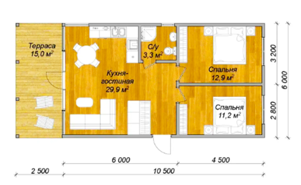 - Возможность террасы — дополнительное пространство для отдыха.