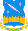 Серебряная башня с острым шпилем символизирует выдающееся сооружение, расположенное на территории округа - Останкинскую телебашню, которая известна не только в стране, но и в мире.