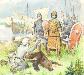 Князь Ярослав, сын святого Владимира решил положить конец грабежам, он приплыл с дружиной в Медвежий угол. Местные жители ополчились против князя, но были разбиты, и по обещали князю жить в мире не грабить и платить ему дань. Но они были язычниками и решительно воспротивились крещению, на котором настаивал князь Ярослав.