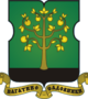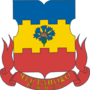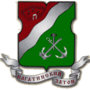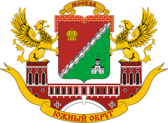 - Щит наложен верхней частью на красный, мурованный золотом фигурный зубец, символ стены Московского Кремля, над зубцом золотая лента с надписью красными буквами: «МОСКВА». Внизу золотая лента с надписью красными буквами: «ЮЖНЫЙ ОКРУГ».