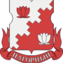 - В верхнем пурпурном поле золотая патриаршая митра, символизирует связь духовной и светской жизни.